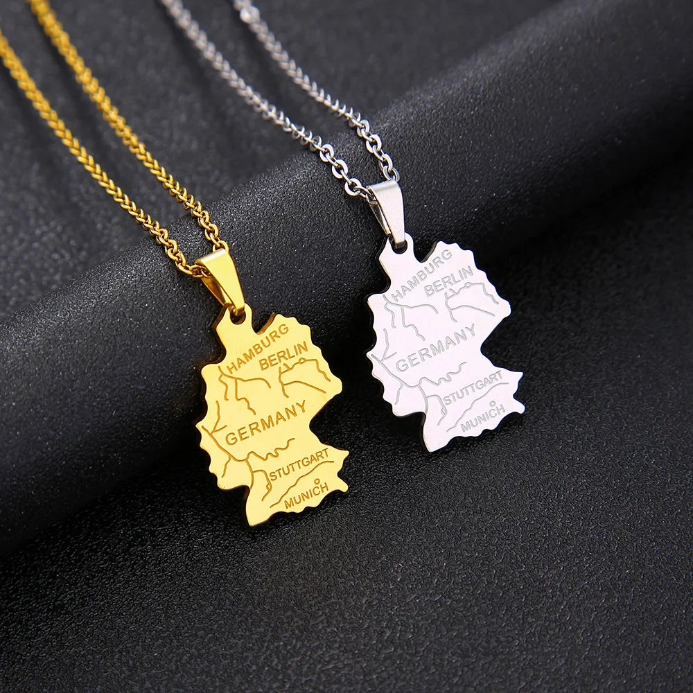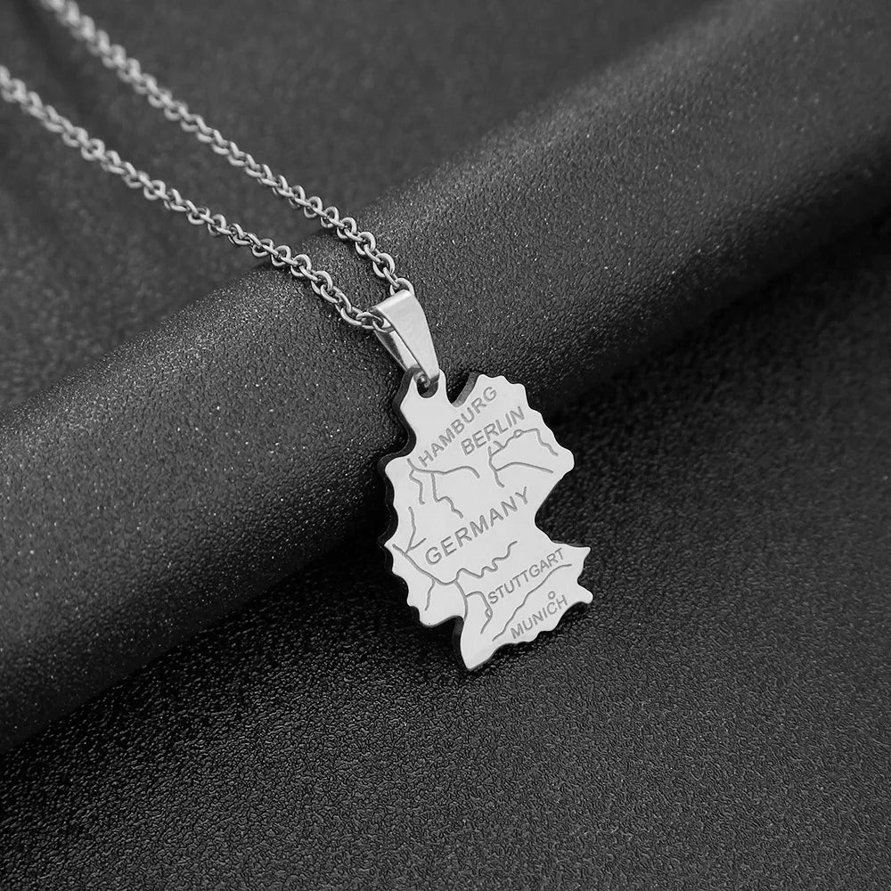 Trage deine Heimat ganz nah bei dir – mit dieser stilvollen Kette, deren Anhänger die Form des deutschen Staatsgebiets zeigt. Ein schlichtes, aber starkes Symbol für Zusammenhalt, Herkunft und Identität. Ideal für jeden, der stolz auf seine Wurzeln ist – oder einfach ein Stück Deutschland immer bei sich tragen möchte.