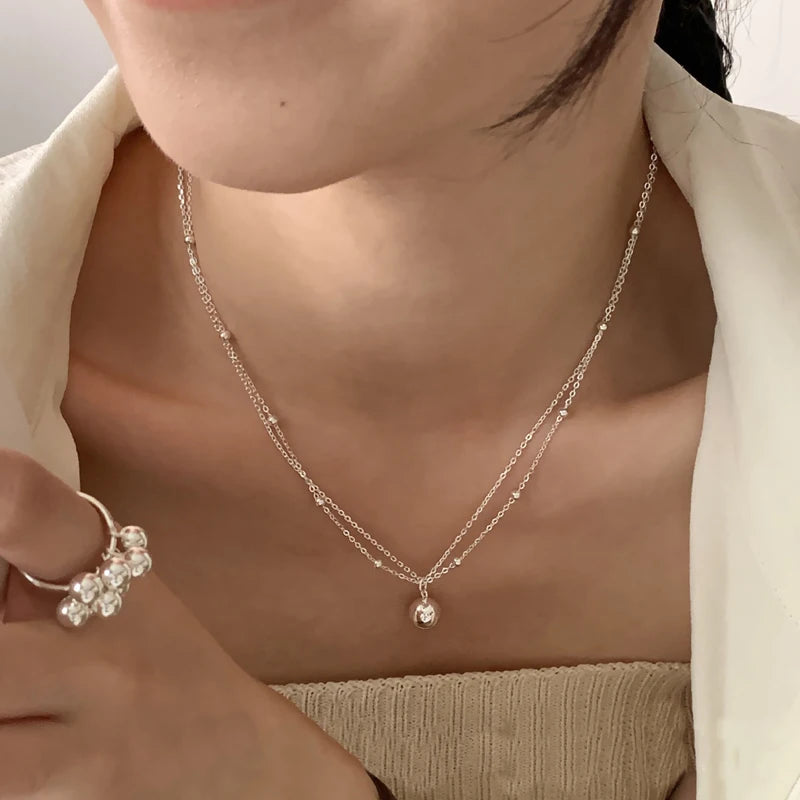 Diese filigrane Doppelhalskette aus echtem 925er Silber vereint zeitlose Eleganz mit modernem Minimalismus. Zwei feine Ketten, eine mit kleinen Silberkügelchen verziert, die andere mit einem glänzenden Kugelanhänger, schaffen ein harmonisches Layering-Design. Perfekt für den Alltag, aber auch stilvoll genug für besondere Anlässe.