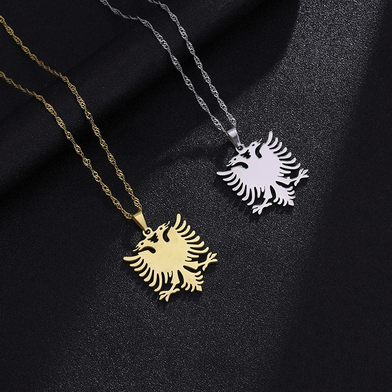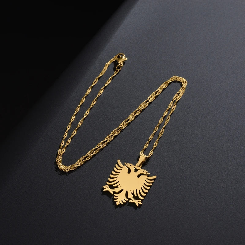 Erhältlich in hochwertigem Gold- oder Silber-Finish, ist diese Kette das perfekte Accessoire für jeden, der seine albanischen Wurzeln stilvoll zeigen möchte. Das klare, kraftvolle Design macht sie sowohl im Alltag als auch zu besonderen Anlässen zum Hingucker.